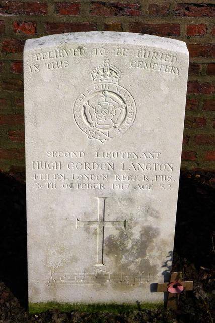 Inscriptions come in many different languages: Welsh, Scottish Gaelic, Danish, Africaans, Maori and Zulu to name the ones I've come across. The language usually reflects the casualty's country of origin, even if he was no longer living there when he died. The War Graves Commission stipulated that "Inscriptions requiring the use of special alphabets such as Greek, etc, cannot be accepted", but despite this there are apparently some Hebrew inscriptions. And there is one famous example where the inscription is a musical notation, which no one has convincingly been able to decipher. The casualty here, Hugh Gordon Langton, was a concert violinist.